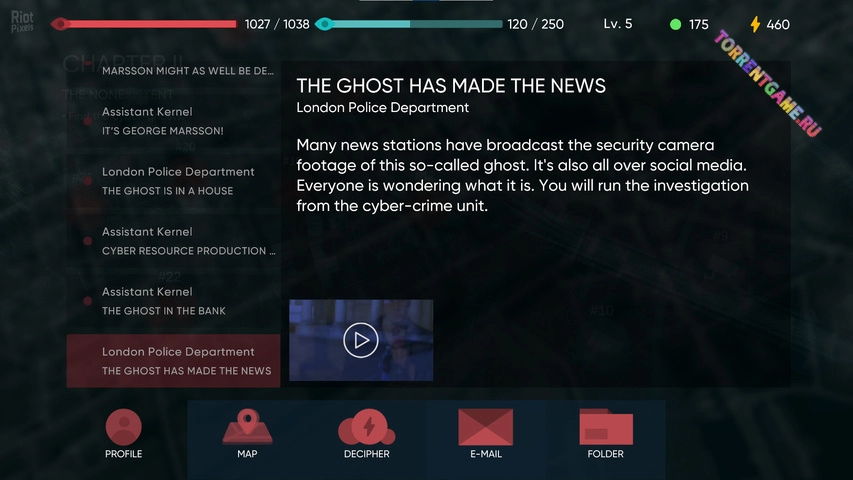 Однажды в полицейский участок поступает звонок, и в полночь вы узнаете, что камера видеонаблюдения в лондонском банке засняла привидение. Новости идут по всем каналам по всей стране, и вам предстоит разгадать эту тайну. Вы обнаруживаете, насколько серьезным и углубленным на самом деле является расследование, когда выслеживаете призрака на улицах Лондона, используя записи с камер видеонаблюдения. Однако больше никаких спойлеров, с этого момента вам предстоит узнать остальное!