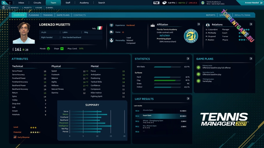 [Manager] [2021] [Спортивные Игры] [Теннис]