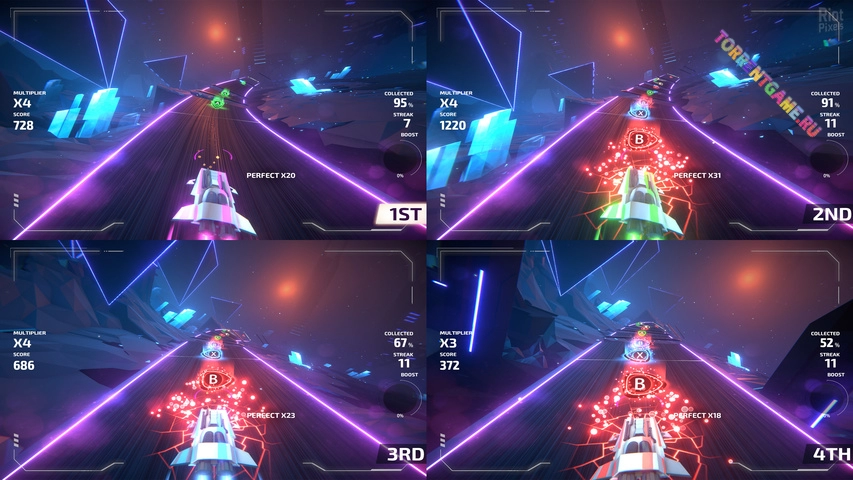 Играйте соло и осваивайте ритм каждой песни или переведите свою вечеринку в режим гипердрайва с локальным мультиплеером до 4 игроков, где захватывающее соревнование лицом к лицу оживет в вашей гостиной. Благодаря разнообразию уровней сложности на выбор, Invector: Rhythm Galaxy предлагает увлекательное испытание для игроков любого уровня квалификации.