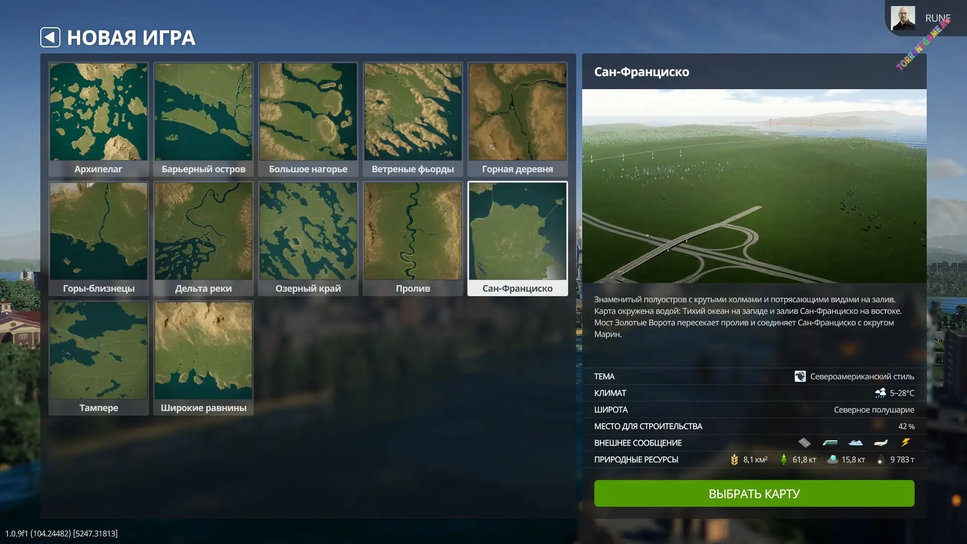 Выбор карты определит климат вашего города. Расширяясь, вам придется считаться с силами природы, изменчивой погодой и сезонными трудностями.