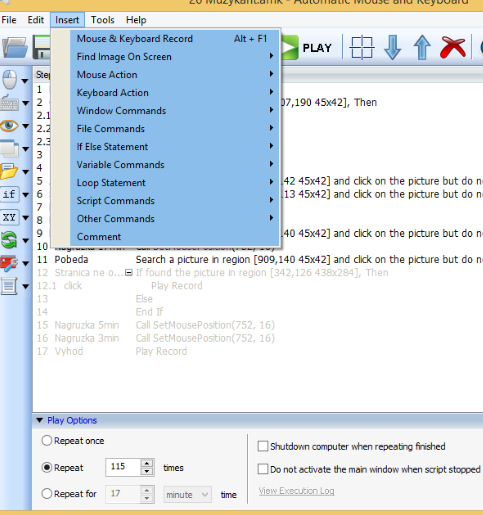 -Записывать все действия клавиатуры и мыши и потом повторить точно