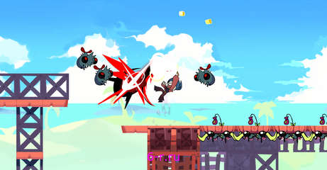Multiple playable characters, all with unique play styles. Some are focused on pure shoot’em up gameplay, others centered around melee attacks. If you’re having trouble on a level, sometimes trying out a new character is the key!